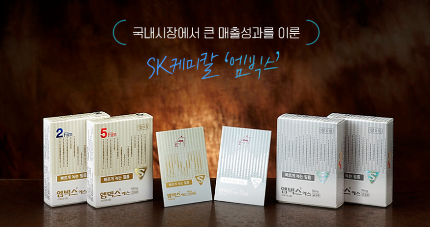 SK케미칼은 기존 제품 대비 필름의 크기를 반이상 줄이고 입안에서 녹는 시간은 30% 이상 단축시킨 업그레이된 '엠빅스 에스'를 출시하였습니다. 엠빅스에스는 낱장 형태로 포장되고 지갑속에 들어갈 만큼 얇고 가벼워 휴대와 복용의 편의성을 극대화시켰습니다. 아내나 여자친구 모르게 물 없이도 복용이 가능하며 자체 제제 기술을 통하여 약물흡수력(AUC)도 기존 정제보다 16% 이상 개선이 되었습니다.