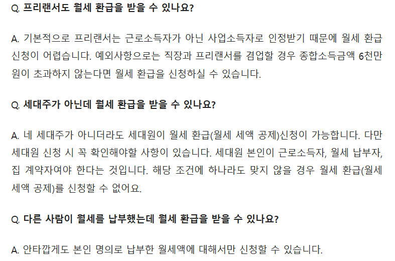 다시한번 강조하지만 납부한 일부 금액을 현금으로 돌려받는 것이 아니라 세액을 공제 즉, 세금을 줄여주는 제도입니다. 월세계약이 종료되었더라도 5년이내에 신청하시면 환급이 가능합니다.